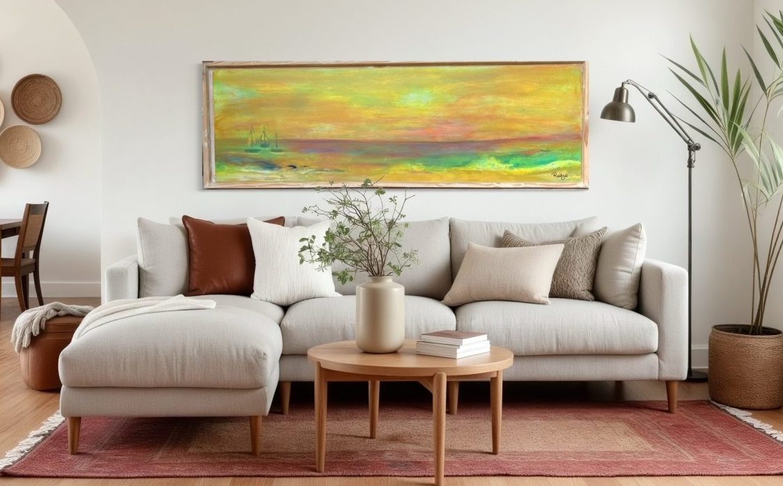 Een globale impressie van het schilderij "Panorama" 120x40cm.