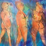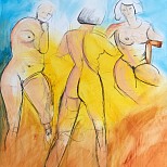 Een globale impressie van het schilderij "Middelandse zee" 150x150cm.