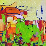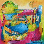 Een globale impressie van het schilderij "Sumatra" 100x100cm.