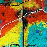 Een globale impressie van het schilderij "Livingcolours" 90x90cm.