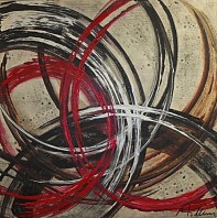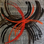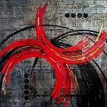 Abstract, modern, hedendaags, rood, zwart, zilver, bruin, cirkels, beweging, warm, eye-catcher, canvas, doek, acryl, vierkant