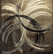 Doek, canvas, acryl, zilver, bruin, zwart, beweging, sober