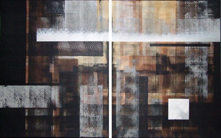 Doek, canvas, rechthoek, 2 luik, goud en koper tinten, zwart, zilver, acryl, modern, abstract, hedendaags, interieur, kantoor, 2 x 70 x 100