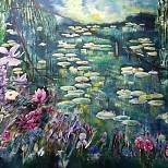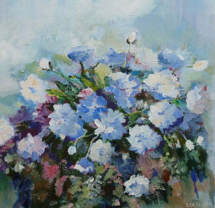 Een globale impressie van het schilderij "Bloemen" 80x80cm.