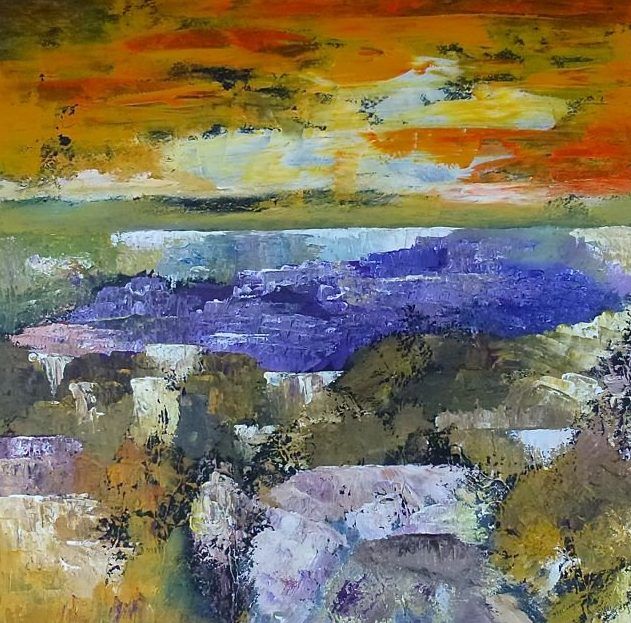 Dit is een semi-abstract, geschilderd, met acrylverf op linnen en met het paletmes gedaan.