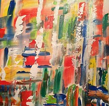 Een globale impressie van het schilderij "Primaverra" 100x200cm.