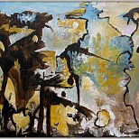 Een globale impressie van het schilderij "Transformatie" 70x70cm.