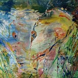 Een globale impressie van het schilderij "Abstract" 100x200cm.