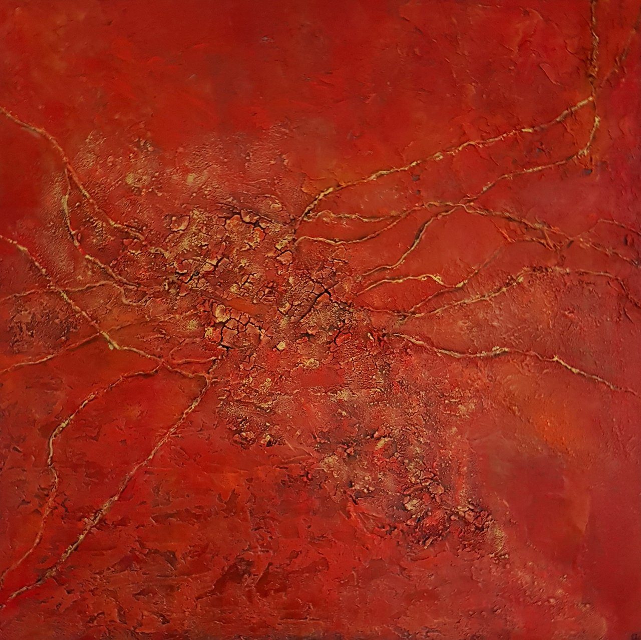 Een globale impressie van het schilderij "Simply Red" 100x100cm.