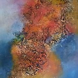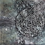 Inspiratie voor dit werk was een oud roestig stuk schroot dat ik tijdens een wnadeling zag liggen en waar de wortels van diverse planten hun weg al doorheen hadden gevonden