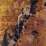 Schilderij uitgevoerd in acryl,op doek.Er zijn diverse materialen aan toegevoegd,en het is gemaakt in een gemengde techniek.