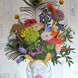 Een globale impressie van het schilderij "Lucky Number 7" 100x100cm.