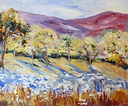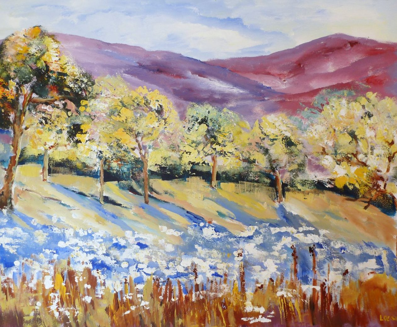 Een globale impressie van het schilderij "Amandelbomen" 120x80cm.