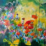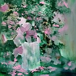 Een globale impressie van het schilderij "Romantisch (4) (aan de waterkant)" 100x100cm.